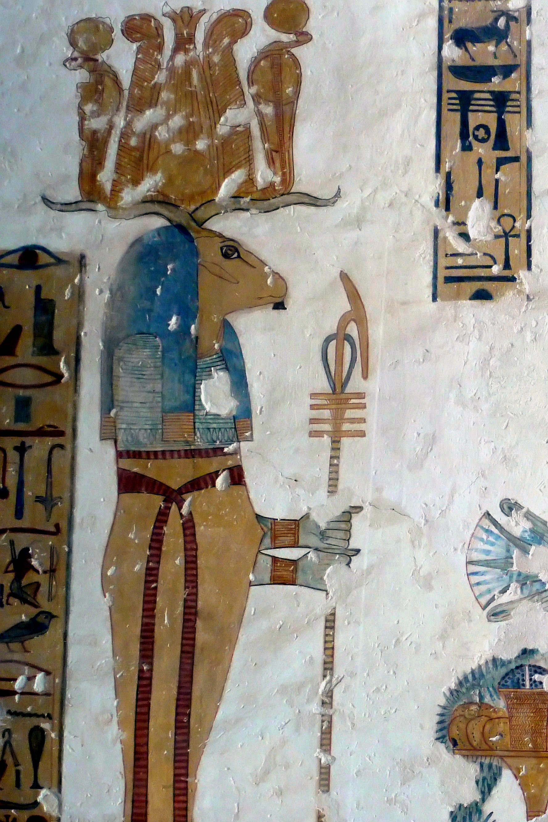 - ↑ Herodotus, Histories ii. 46. Plutarco asocia específicamente a Osiris con "la cabra de Mendes"." De Iside et Osiride, lxxiii.