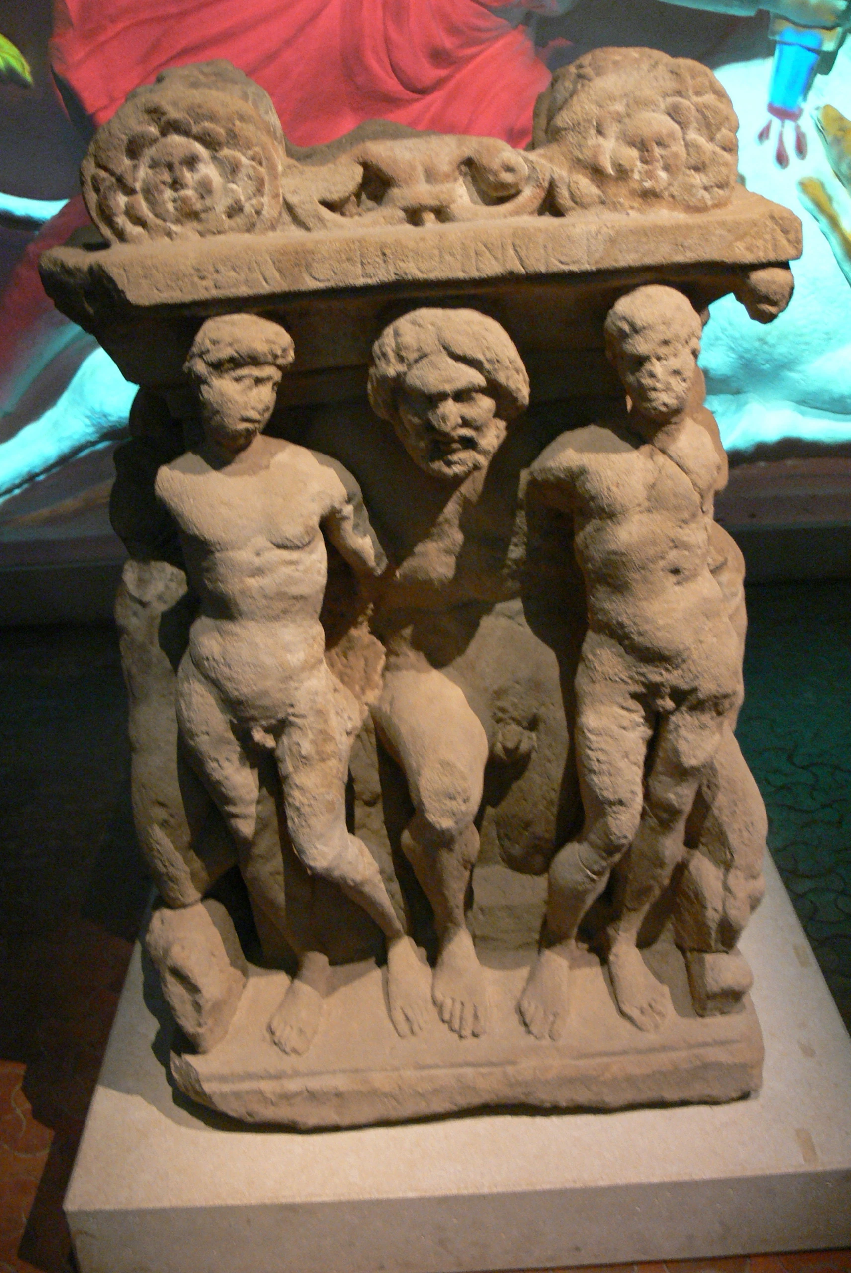Altar mitraico (siglo III d.C.) mostrando a Caelus flanqueado por las alegoría de las Estaciones (Museo Carnuntum, Baja Austria).