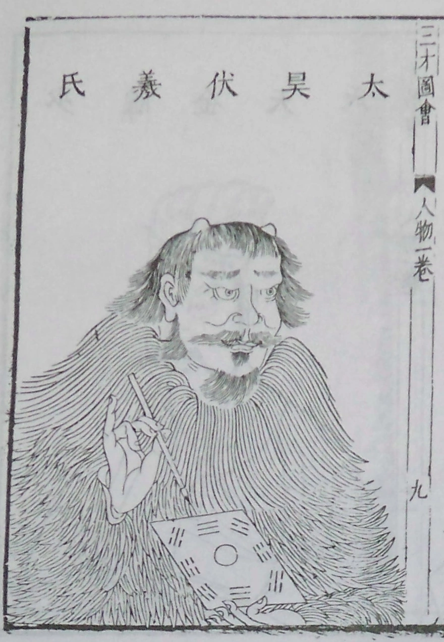 Según el mito chino, Fuxi y su hermana Nüwa fueron los únicos supervivientes de una gran inundación. Tras ella, se convirtieron en los padres de toda la humanidad. Fuxi se convirtió en el primero y más famoso de los emperadores legendarios de la antigua China, seguido por Shennong y Huangdi, el emperador amarillo.[1]