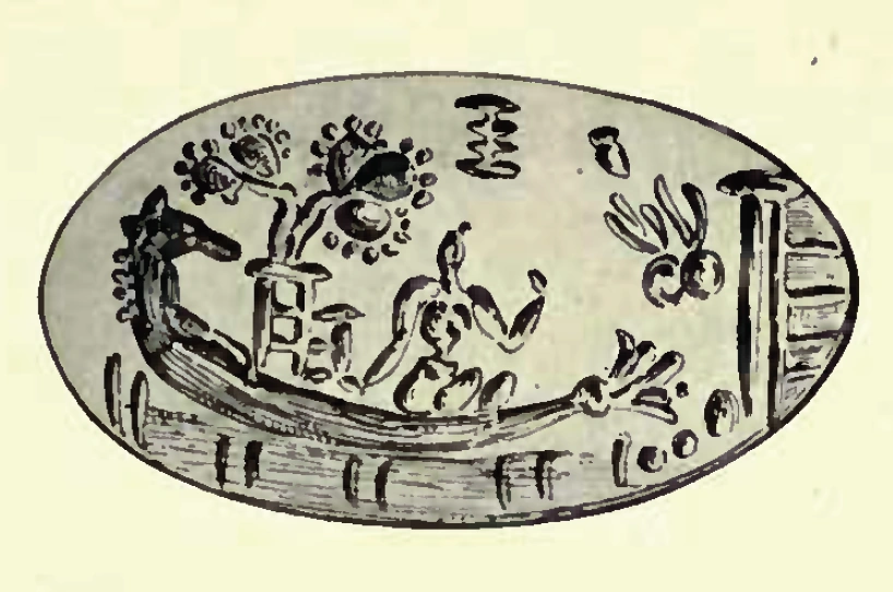 Una figura femenina, posiblemente relacionada y probablemente una diosa marina, es representada en un anillo minoico de oro de la isla Mochlos en Creta. La diosa tiene una cabeza monstruosa y está sentada en una barca. Se muestra un árbol sagrado, probablemente relacionado con el culto minoico del árbol.[4]