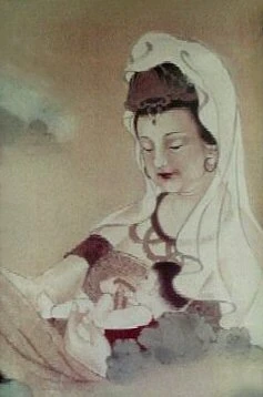 Guanyin y el niño, tema de pintura moderno, similar a María y el niño.