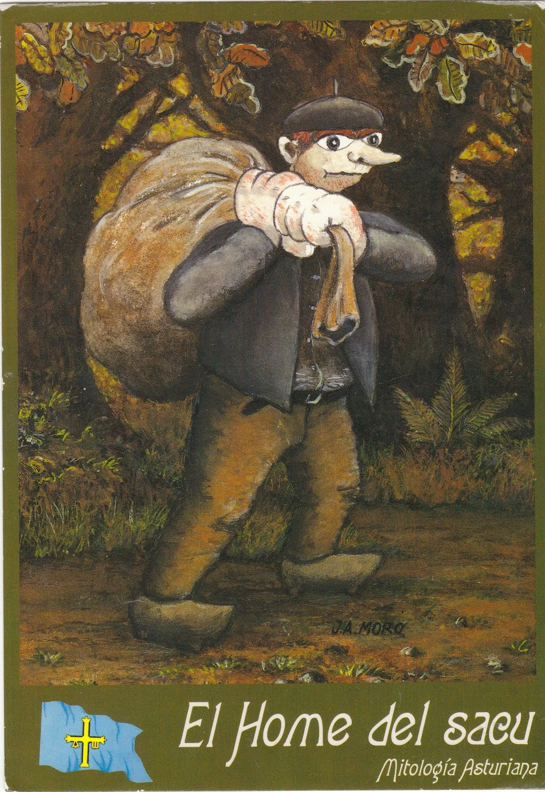 Mito ampliamente extendido por la geografía española además de la asturiana, este lúgubre personaje ronda por los caminos con un saco al hombro, por las noches, deambula por las calles y en silencio rapta a los niños que pasan, los mete en su saco y se los lleva, no dejándolos nunca volver a ver. En una versión del mito, los mata por portarse mal, mientras que en otra se los come.