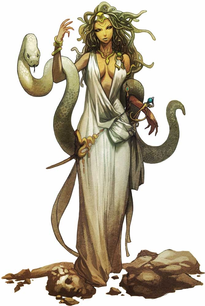 No lejos de ellas viven las Gorgonas, horror de los mortales, tres hermanas aladas, de cabellera de serpientes, cuya vista ocasiona al punto la muerte![]()