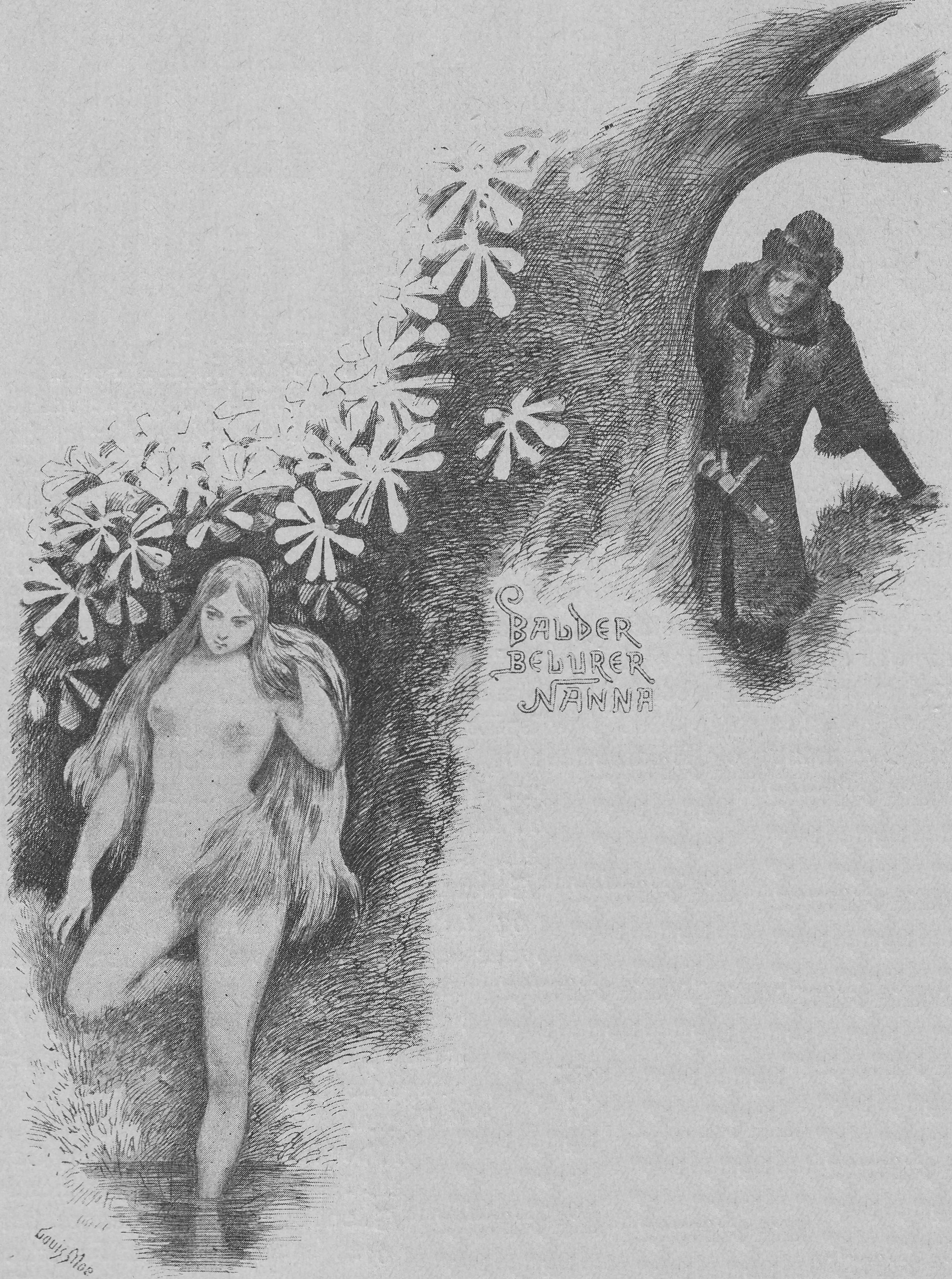 Baldr observa en secreto a Nanna bañarse 1898) por Louis Moe
