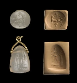 Sellos neo-asirios de Gula sentada en un trono sobre un perro